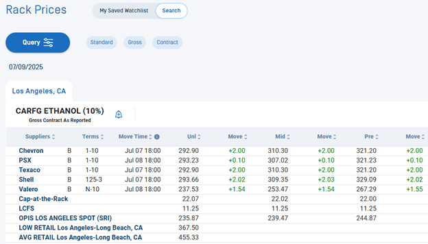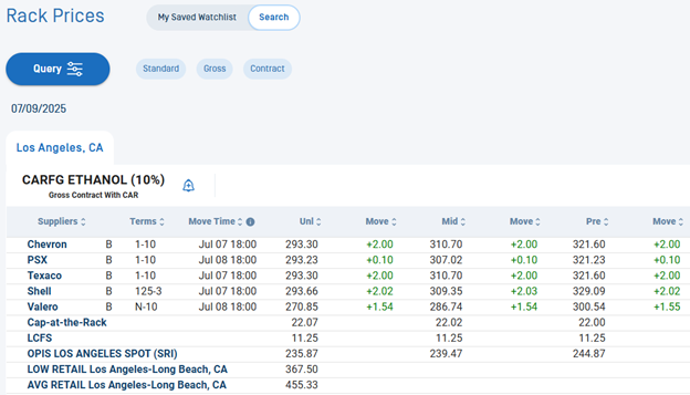 Note:Β The OPIS βCARβ value accounts for costs associated with BOTH Cap and Trade Β (Cap at the Rack) regulations AND the Low Carbon Fuel Standard (LCFS).