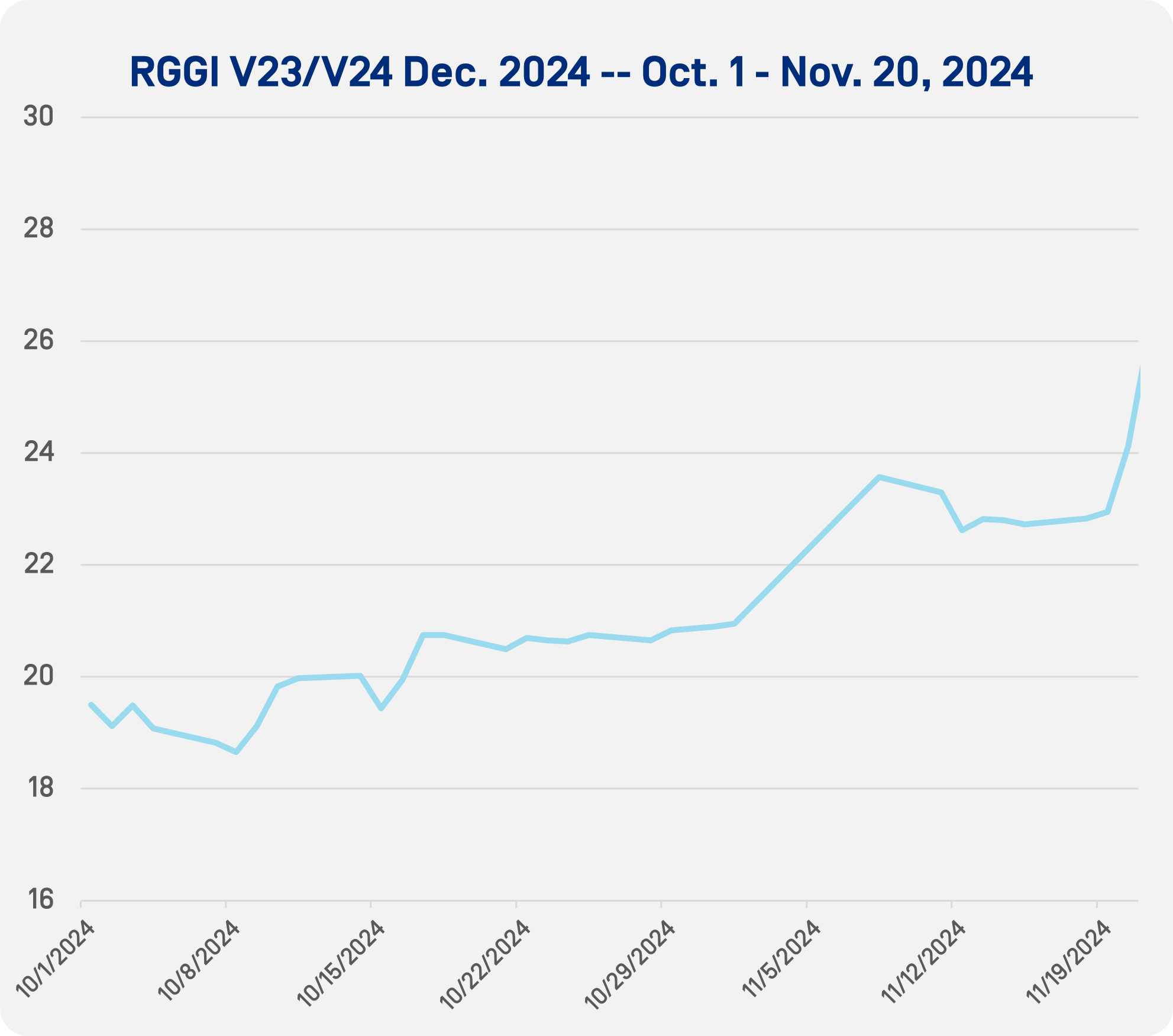 In 2024, OPIS recorded a $3.50/st increase in RGGI prices between Oct. 1-Nov. 27, with a peak at $26.125/st on Nov. 21, 2024. This year prices ramped earlier, peaking at $27.175/st on Nov. 6.