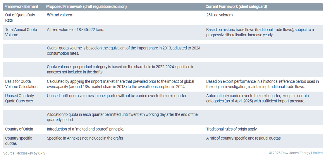 This total quota volume would be distributed across steel product categories proportional to 2022-2024 imports, though the annex detailing product categories, and any potential changes to CN code groupings are not included in the draft.